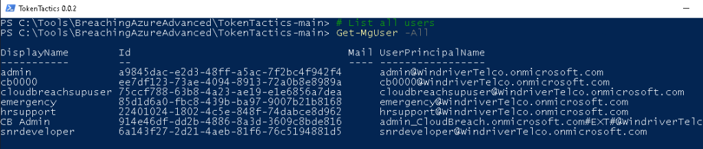For the purpose of this lab, we just executed a few commands to demonstrate how Entra ID can be enumerated using the Connect-MgGraph Powershell module.