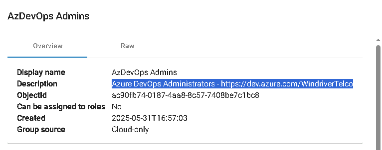 http://127.0.0.1:5000From the GUI, you can easily browse users, groups, and applications. Navigate to the Groups section and locate the AzureArc Admins dynamic and AzDevOps Admins groups which seems to be interesting. Inspecting the membership rule of AzureArc Admins group you will notice that any user whose jobTitle attribute is set to AzureArc Admin will automatically be added to the group. In regards with AzDevOps Admins group, it disclose WindriverTelco’s Azure DevOps URL that it will be useful later on: Azure DevOps Administrators – https://dev.azure.com/WindriverTelco.